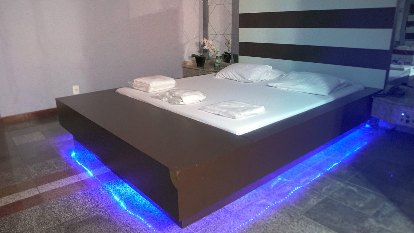 SUÍTE DE ALTO PADRÃO, POSSUI Piscina com Cascata, Sauna a Vapor, Frigobar, Cine-privê, SOM, Ar Condicionado, Banheira de Hidromassagem e Linda Decoração.